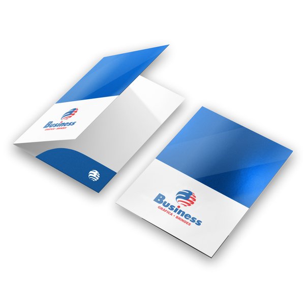 A Pasta Gráfica Business no tamanho 315x460mm é produzida em papel couchê 300g com acabamento fosco, garantindo resistência e um toque elegante. Com impressão 4x0 cores (somente frente) e bolsa colada impressa, esse modelo se destaca pela laminação brilho 1x0, que valoriza a arte com um acabamento reluzente e protetor.